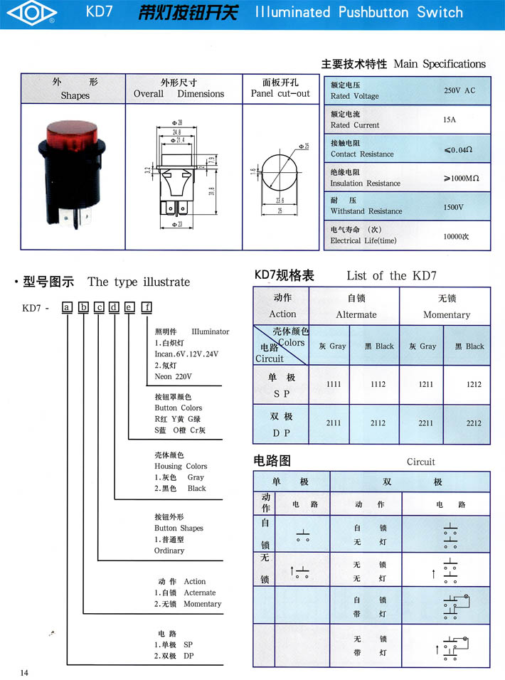 產(chǎn)品型號(hào):KD7系列帶燈按鈕開關(guān)