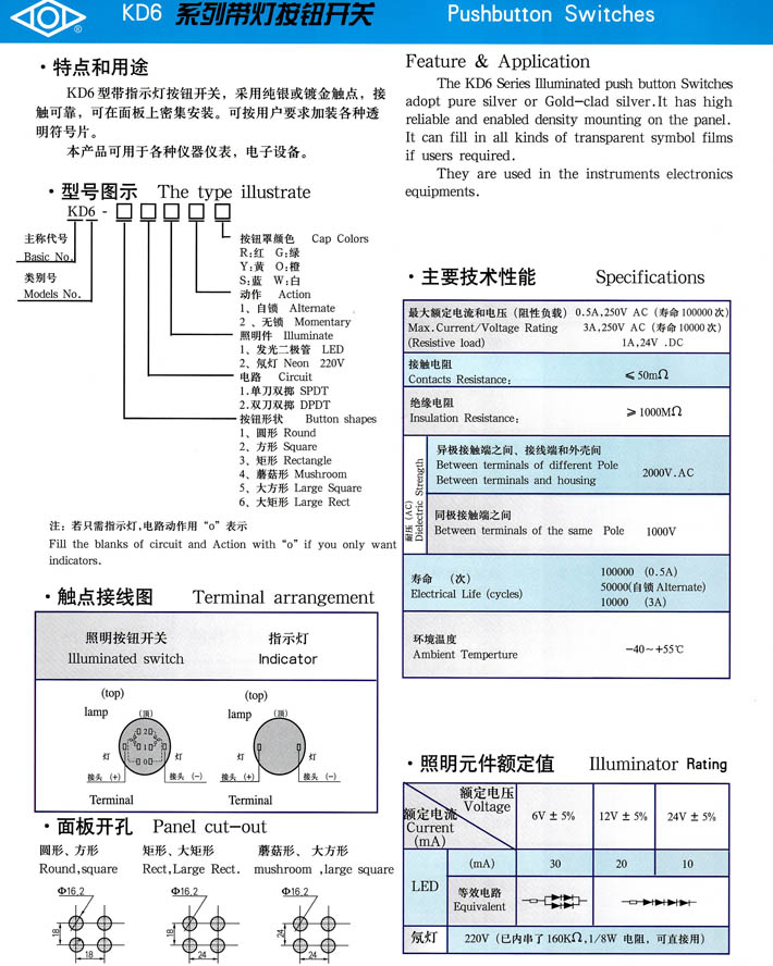 產(chǎn)品型號:KD6系列帶燈按鈕開關(guān)
